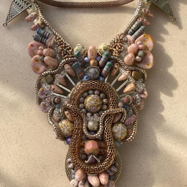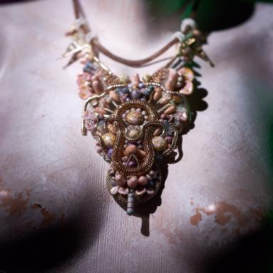 Představuji Vám ručně vyšívaný náhrdelník Pastelscifi I.