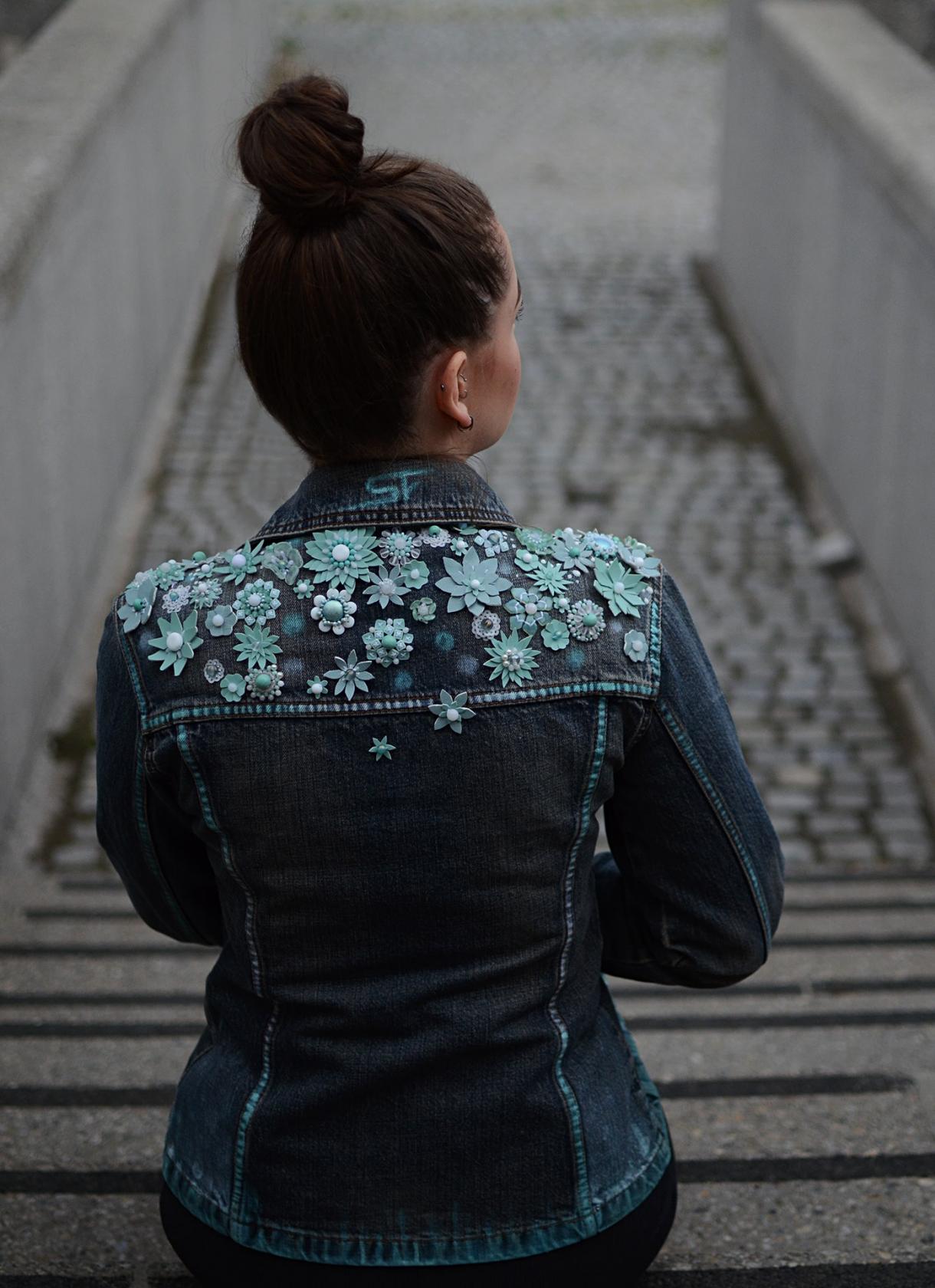 A je to tady. Plocha na kšiltovkách a náhrdelnících mi byla malá a tak přichází jeansové sako dozdobené v mé dílně!!!