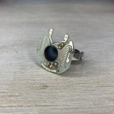 Unikátní prsten z limitované edice. Bylo vyrobeno pouze 5ks. Prsten je díky univerzální velikosti vhodný pro muže i ženy. Základ je vytvořen z chirurgické oceli. Ozdoba je upcyklovaná z elektroodpadu, který jsem sama rozebrala.
