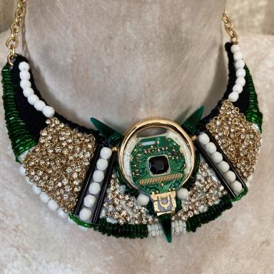 - upcyklovaného elektroodpadu - jak již Vám název napovídá, tomuto unikátnímu šperku vévodí součástka, která byla skryta v digitálních hodinkách