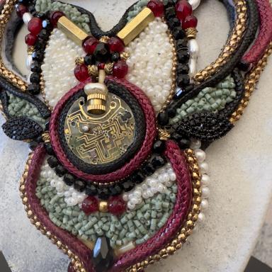 Představuji Vám ručně vyšívaný náhrdelník Watch art III.