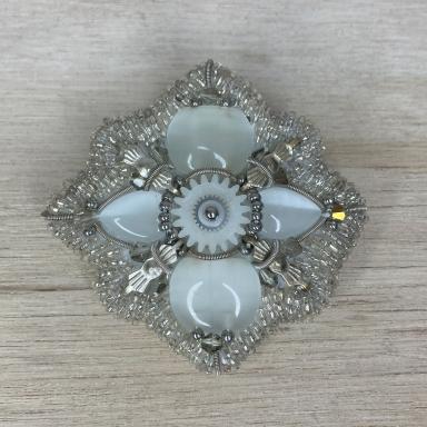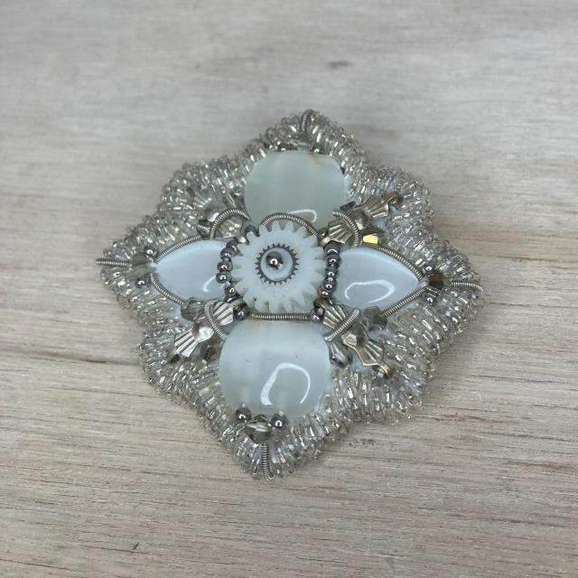 Wild city flower VII brož přichází s unikátním využitím elektroodpadu a jiných recyklovaných materiálů - rozbitá bižuterie, komponenty ze starého lustru. Materiály jsou ručně získávány i zpracovány. Zbylý odpad se díky rozebrání lépe vytřídí. Vše je doplněno o skleněné korálky.