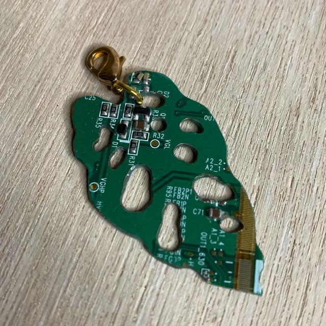 Electric monstera leaf II 249,00 Kč Rucně vyrobený, broušený přívěšek, který zaujme svou originalitou a kontrastem mezi materiálem a motivem samotným. Tento list monstery je vystřižený z desky plošných spojů nalezené ve starém lcd monitoru notebooku.