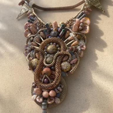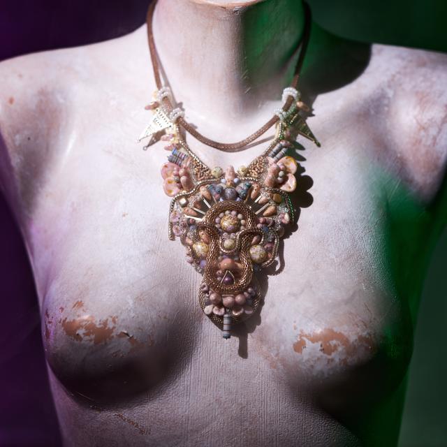 Představuji Vám ručně vyšívaný náhrdelník Pastelscifi I.