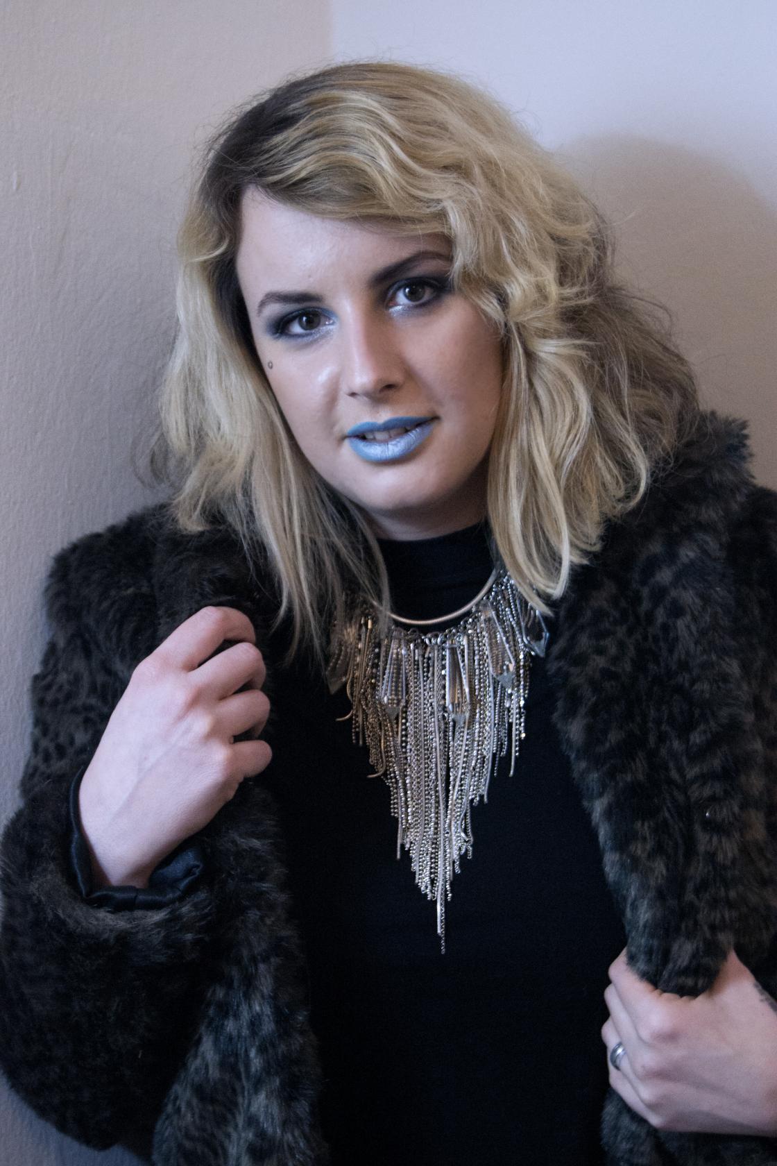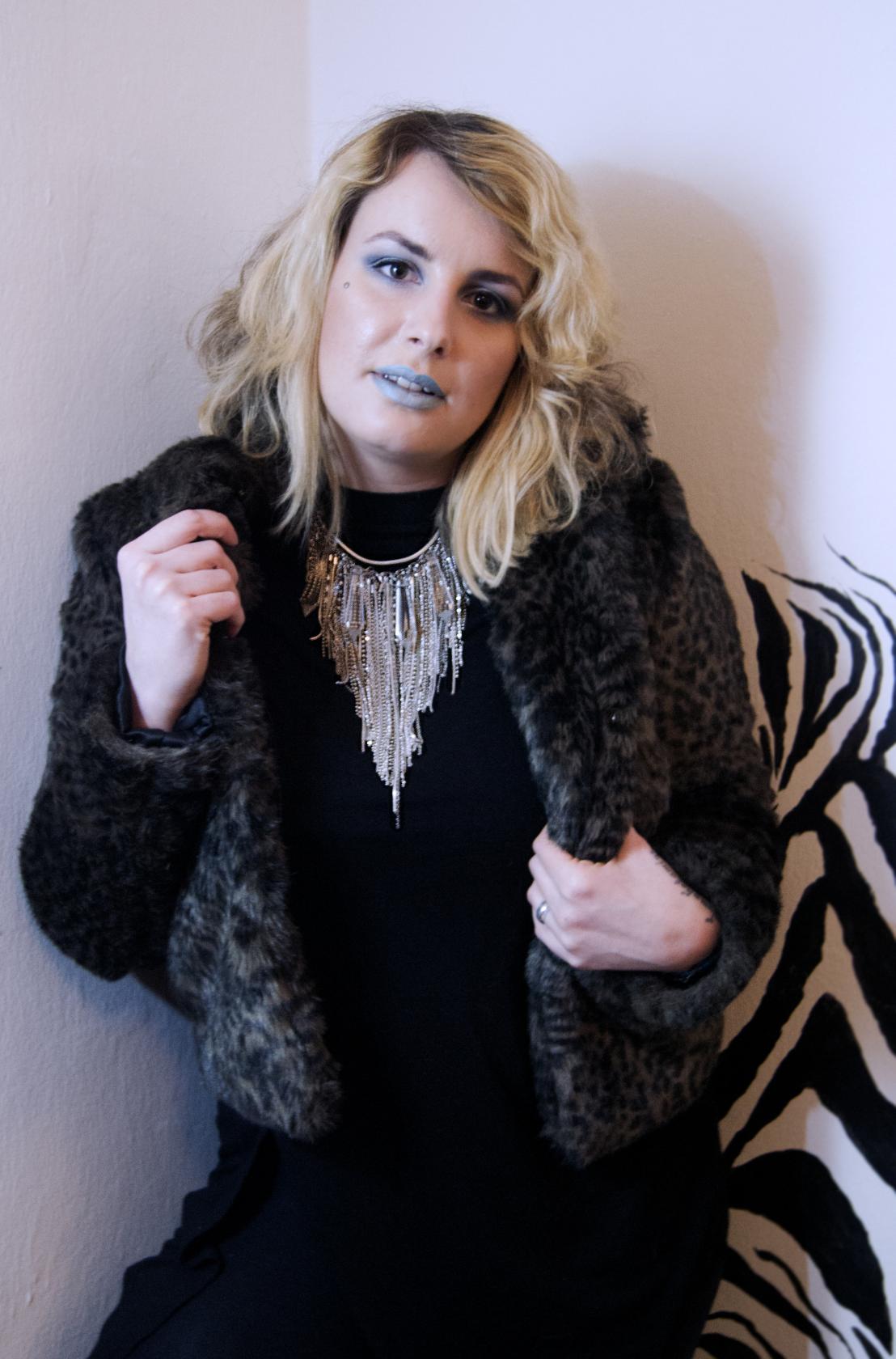 Náhrdelník je vyroben z různých kovových řetízků, zajímavé jsou například kuličkové řetízky z klíčenek nebo zbytky hadích řetízků, které jsem vlepovala do koncovek. Vše zvýraznily skleněné komponenty ze starého lustru. Stříbrná je pro mě barva této zimy, takže to byla pro silvestrovský večírek jasná volba .