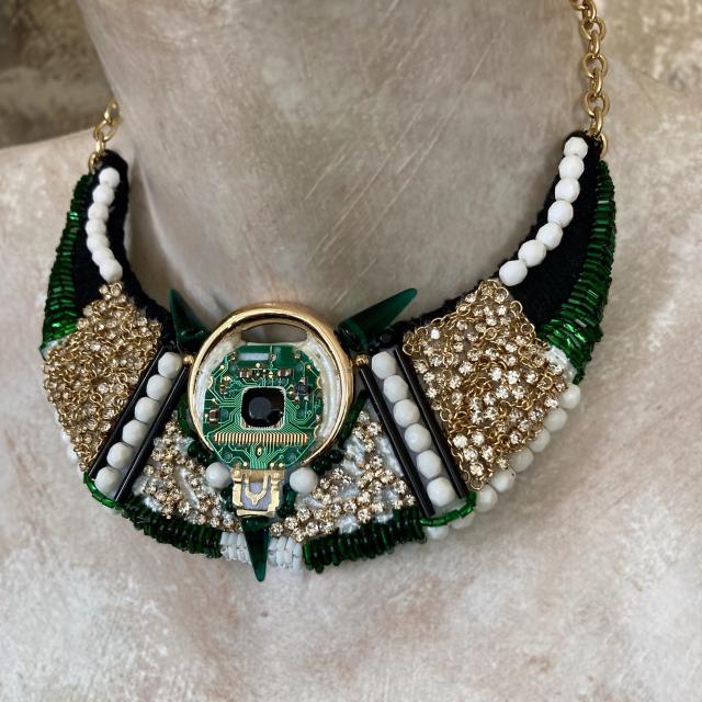 - upcyklovaného elektroodpadu - jak již Vám název napovídá, tomuto unikátnímu šperku vévodí součástka, která byla skryta v digitálních hodinkách